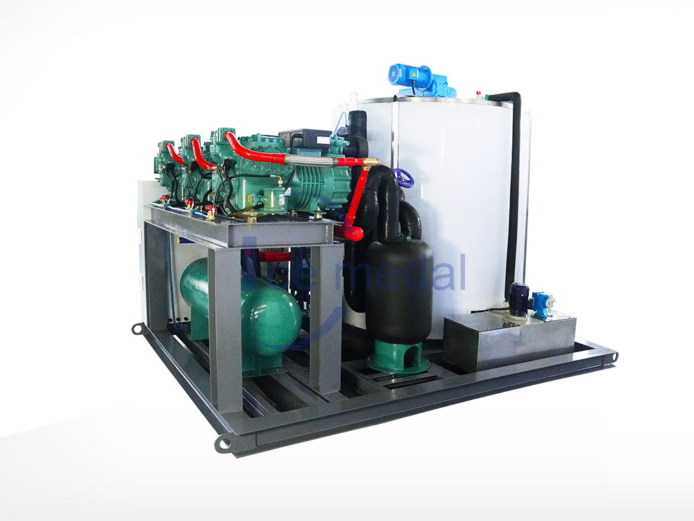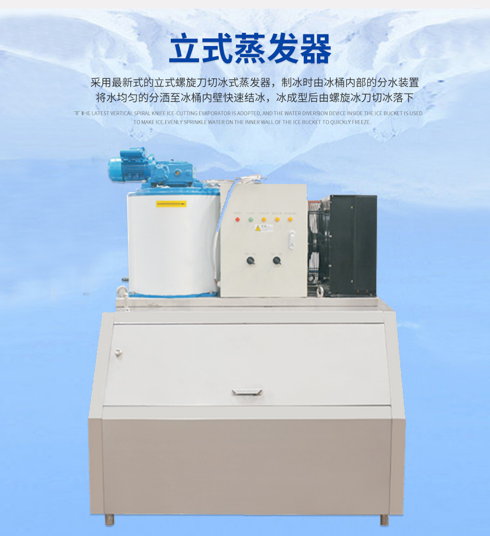 片冰机,制冰机的一种,片薄、干爽疏松状的(de)白色冰。平面形状不(bú)规则,厚度15毫米 —22毫米,直径约为12 - 45毫米。 片冰质地干燥、柔软无尖锐棱角,不会刺伤(shāng)冷冻物体。冷藏包装过程中其扁平(píng)的外(wài)型(xíng)将尽可能避免伤(shāng)害到被冷藏物,对被包装食品起到保护作用。 片冰具有大接触面积、快速(sù)制冷、储藏运输便捷、混合彻底,减少热交换,保持冰(bīng)的温度,并有良好的保湿效果等特点。自动片冰机采用先进的立式(shì)螺旋刀切冰式蒸发器,制冰时(shí)由冰桶内部的分水装置将水均匀的分洒至 冰桶内壁快速(sù)结冰,冰成型后由螺旋冰(bīng)刀(dāo)切冰落下。